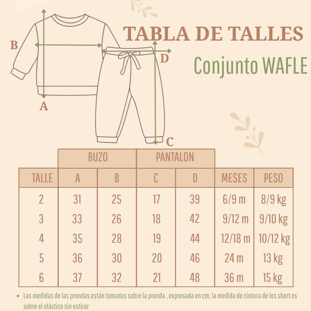 Este conjunto incluye un buzo cómodo de cuello redondo y un pantalón con cintura elástica que se adapta perfectamente al cuerpo del bebé, sin apretar ni incomodar.
