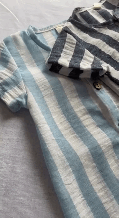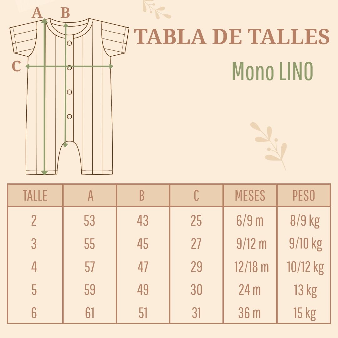 Este mono de lino rayado es la opción ideal para mantener a tu bebé cómodo y fresco en cualquier ocasión. Con su diseño ligero y transpirable, tu peque podrá moverse con total libertad, ya sea para una salida familiar o un día de juegos en casa.
